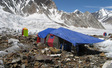 Irgendwann in den vergangenen Tagen hatte der Sturm im oberen Gletscherbecken unser Camp1 völlig verwüstet. Das Zelt war in kleinste Teile zerfetzt worden. Teile der Ausrüstung fanden wir später einhundert Höhenmeter weiter oben, zwischen den Felsen, zerstört, wieder.