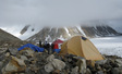 Beinahe sofort fanden wir den Aufstieg durch den Gletscherbruch zum oberen Gletscherbecken. Ein riesiger Kessel war der Platz für unser Camp1. Von hier aus konnten wir die Wand gut beobachteten.